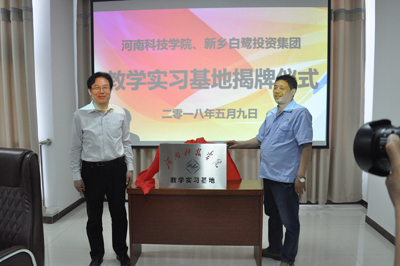 在签约及揭牌仪式上,冯启高与朱学新代表校企双方签订教学实习基地协议,并共同为教学实习基地揭牌。冯启高在讲话中对我校的历史沿革、学科建设、师资队伍、科研方向及学科特点等方面做了介绍。