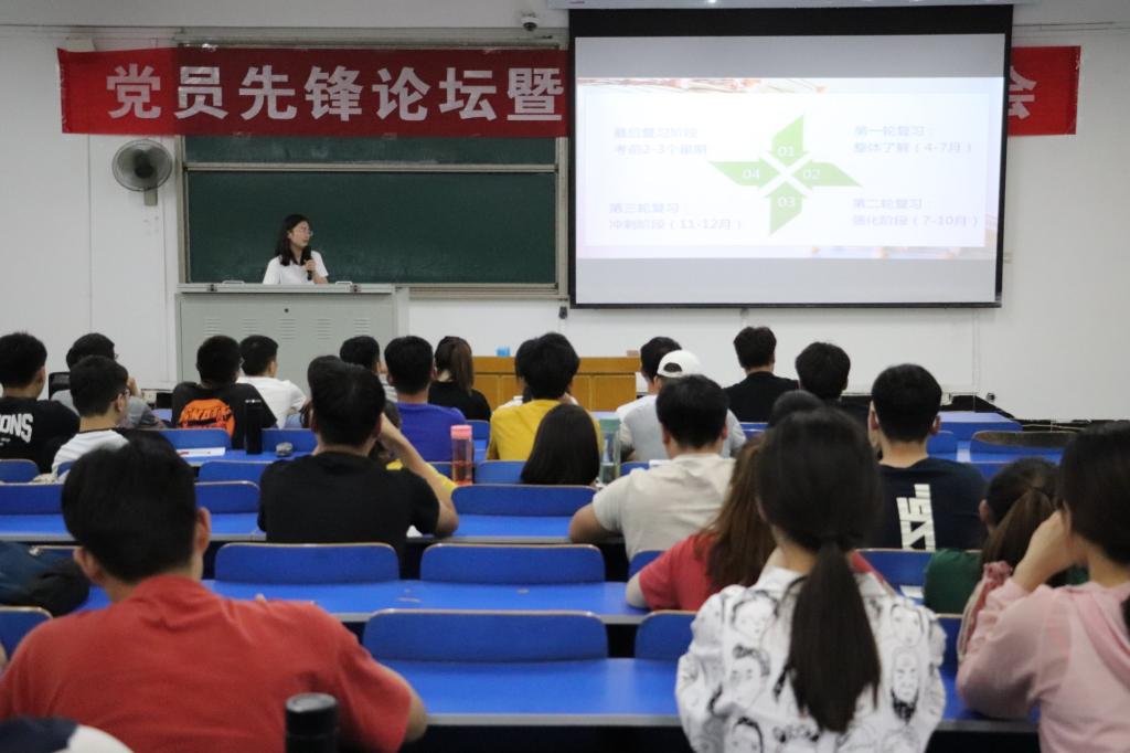 在八#一教室举行了党员先锋论坛暨考研经验交流会。辅导员刘颖和2016、2017级备考学生到场聆听。