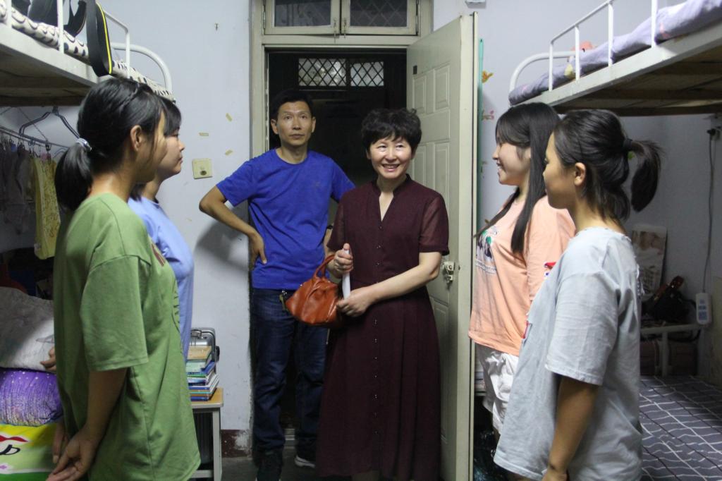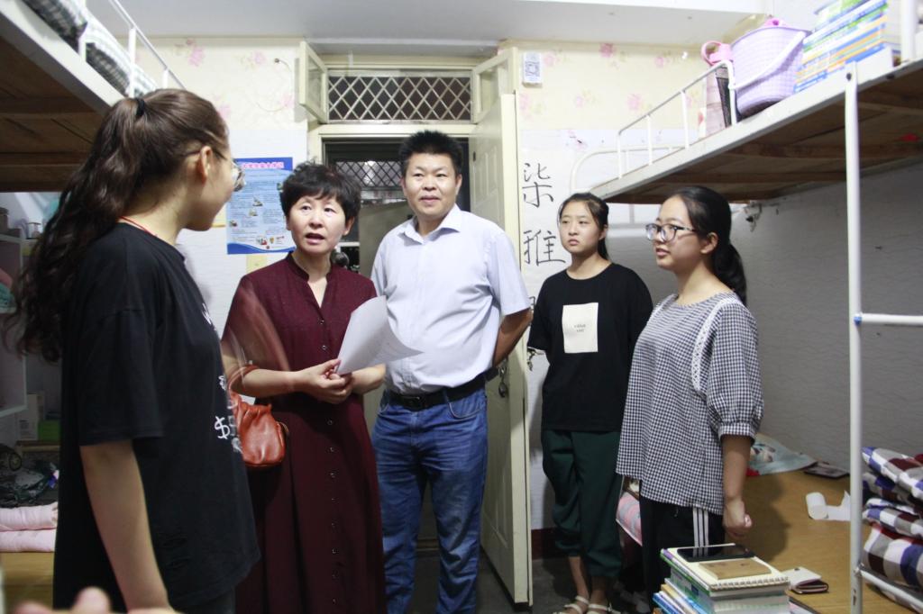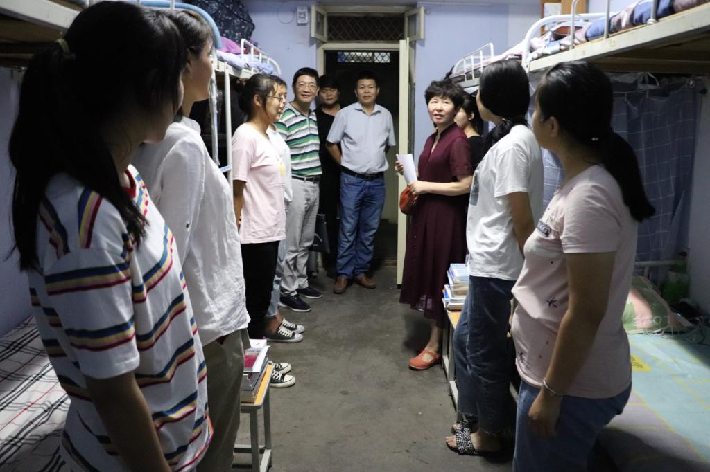 党委书记赵亦芳,院长张裕平,党委副书记朱宏,副院长连照勋、谷永庆、陈军,辅导员到全体新生宿舍走访慰问。