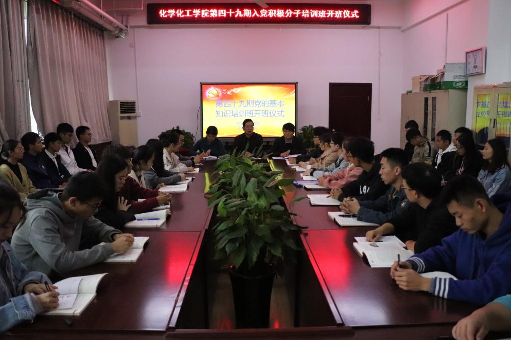 在会议室举办第四十九期入党积极分子培训班开班仪式。学院党委副书记朱宏,全体辅导员及59名入党积极分子参加了开班典礼。仪式由侯小鹏主持。