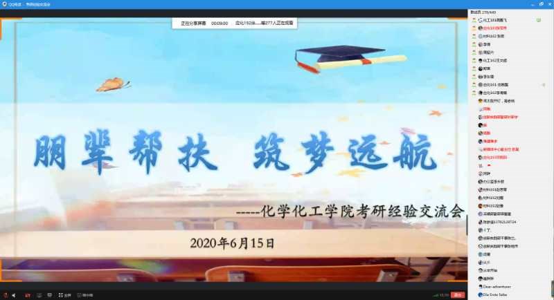 举行了以“朋辈帮扶 筑梦远航”为主题的线上考研经验交流会,各年级学生积极参与分享会。