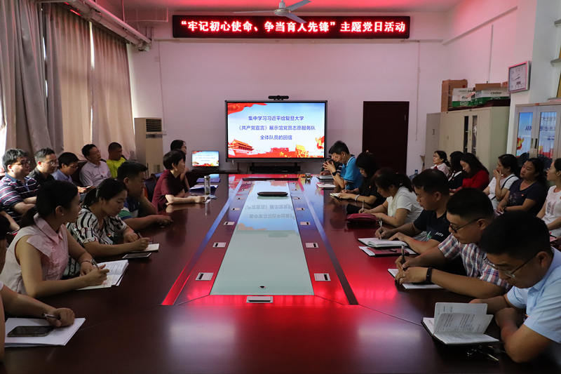 党委在学院会议室举行“牢记初心使命,争当育人先锋”主题党日活动。学院党委委员、支部书记和教师党员参加了活动。主题党日活动由院党委书记赵亦芳主持。