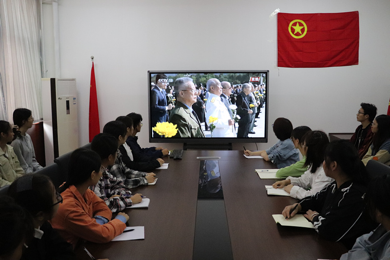 活动伊始,同学们认真了解了烈士纪念日设立的重要意义及烈士们的英雄事迹。紧接着,各团支部带领同学们共同观看习近平等党和国家领导人同各界代表一起,在天安门广场向人民英雄敬献花篮的实况直播,在庄严肃穆的氛围中感受革命先烈坚强的意志和信念,以及不屈不挠、勇往直前的奋斗精神。最后,同学们庄严肃穆,默哀祭奠牺牲的烈士们。