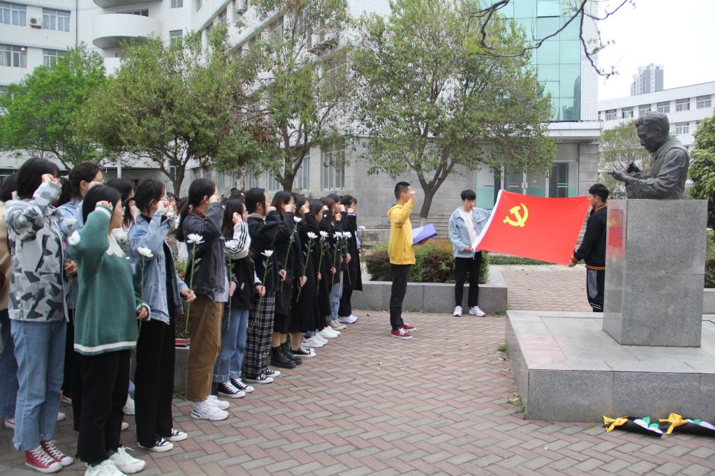 祭奠先烈悟革命精神。4月4日,学院组织学生党员到老校长罗玉川和教授黄光正雕像前祭奠,学生党员认真聆听两位先辈的生平事迹和科研成绩,深入了解他们的卓越贡献和丰功伟绩。学生拂去墓碑上的尘土,献上致敬先辈、缅怀先贤的菊花,寄托哀思。随后,学生党员代表发言,表示要深入学习先烈爱党、爱国、爱校的崇高精神,不忘初心,砥砺前行,为实现中华民族伟大复兴中国梦贡献青春力量。