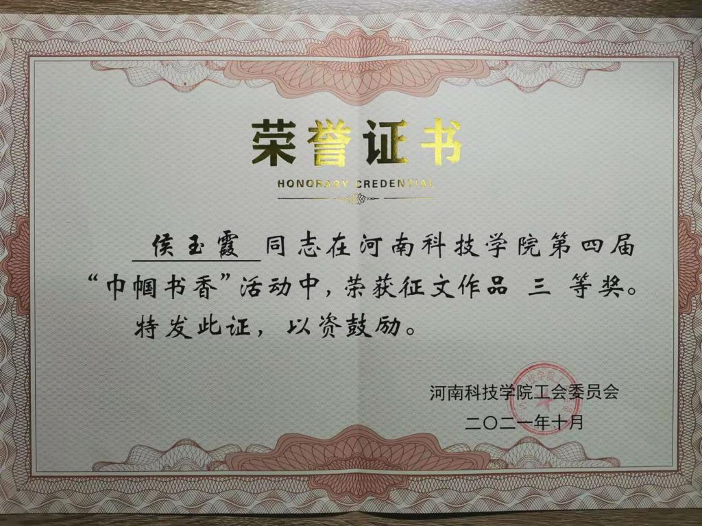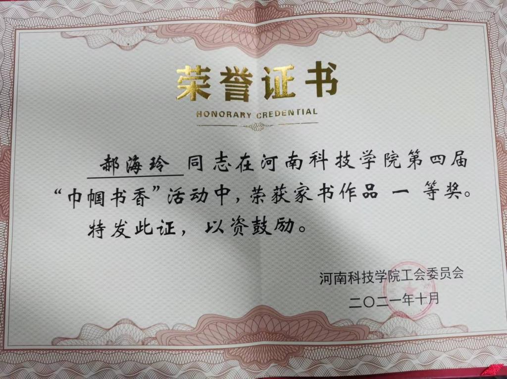 近日,在新乡市寻找“最美家庭”活动、学校2021年度教学技能竞赛(工科、理科组)、校工会第四届“巾帼书香”活动中,91成人电影 牛红英家庭被推选为新乡市最美家庭,范淑敏、刘露荣获教学技能竞赛二等奖,郝海玲、侯玉霞分获征文作品一等奖、三等奖。