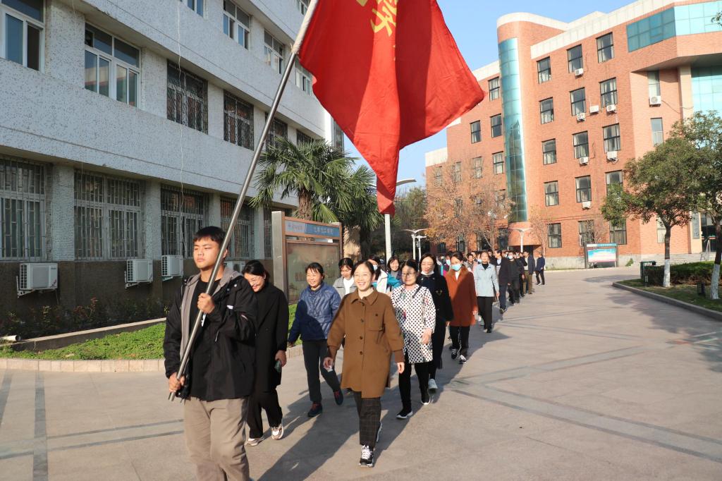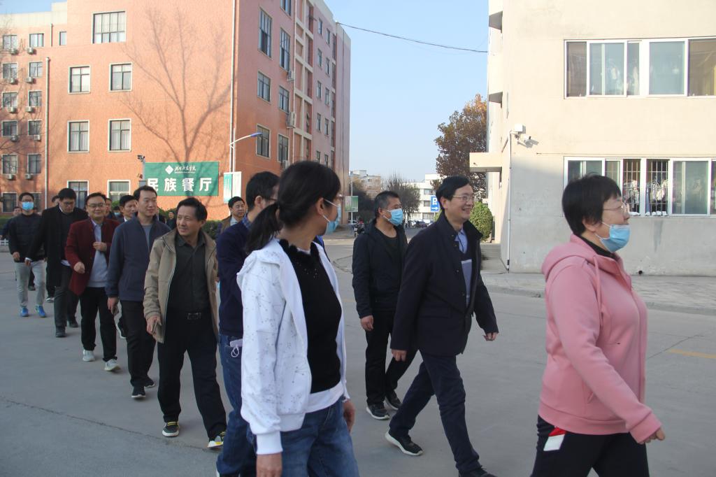 健康就是幸福。因为疫情防控需要,学院教师分批次、拉开间距进行健步走。在学院旗帜的引导下,广大教师踏着和煦的阳光,步行在美丽的校园。一路上,老师们步伐矫健,说说笑笑,欣赏着校园美景,放松了紧张心情,享受着幸福生活。