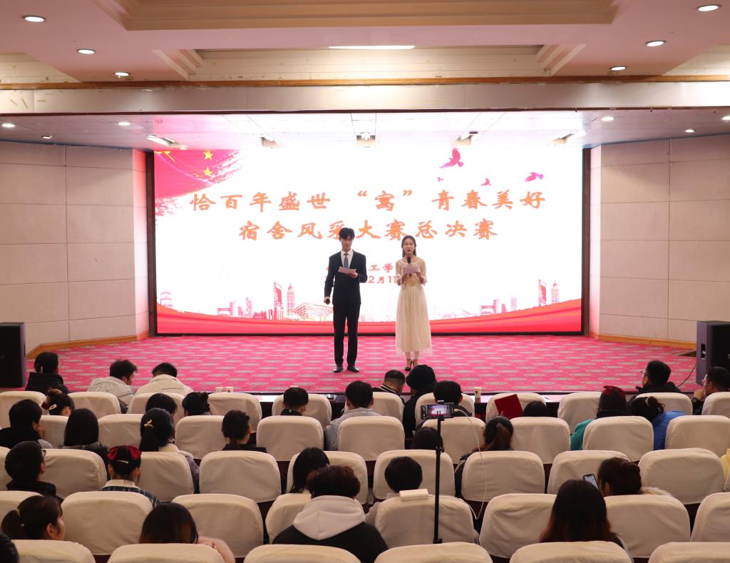 在图教201举办以“恰百年盛世,寓青春美好”为主题的宿舍风采大赛决赛暨新生代理班主任颁奖仪式。学院团委书记侯小鹏,辅导员吴俊超及2021级全体学生观看了比赛。
