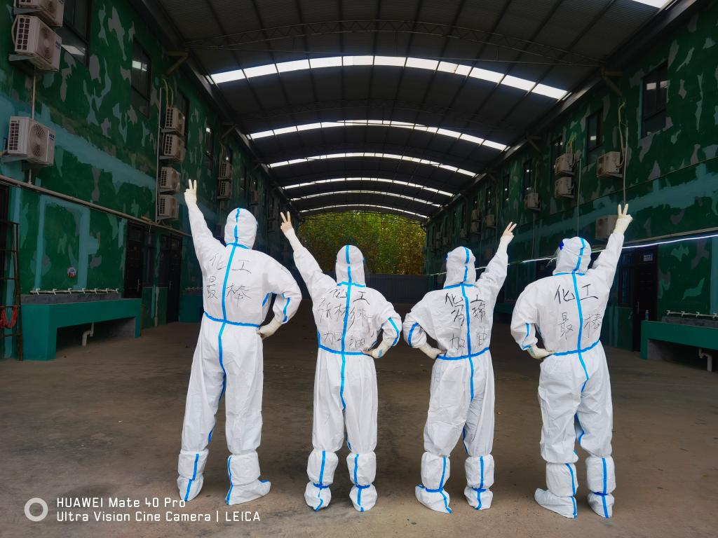 荆瑞俊、亓新华、侯小鹏、郭昂在搬运晚饭