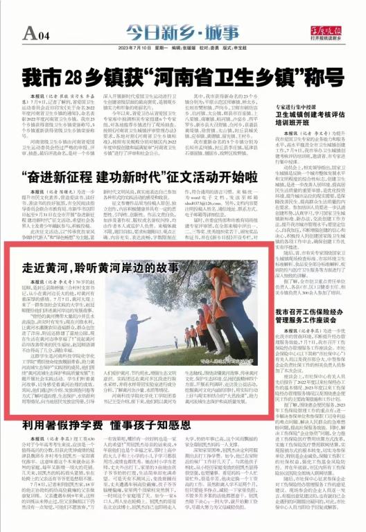 组建了“勇担使命绽放靓丽青春,助力黄河流域生态保护”实践团队赴封丘县陈桥镇开展实践活动。本次社会实践活动被学习强国、新乡广播电视台、平原晚报等多家媒体报道。