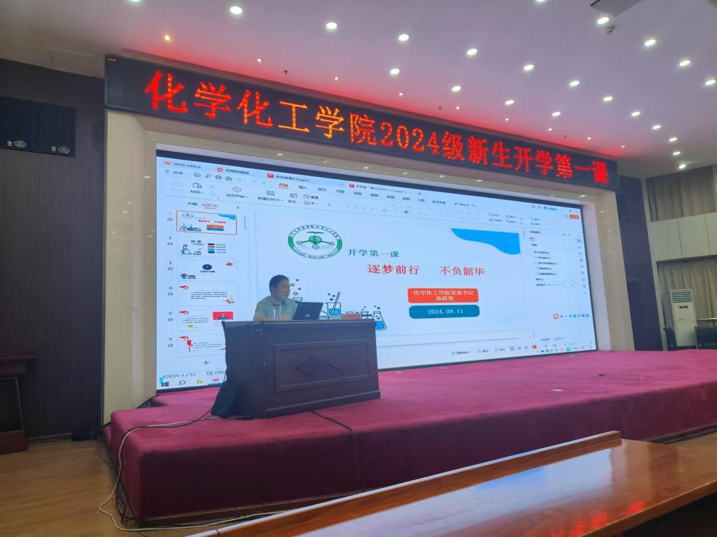 党委书记孙震寰在行政楼308会议室为2024级新生讲授“开学第一课”。