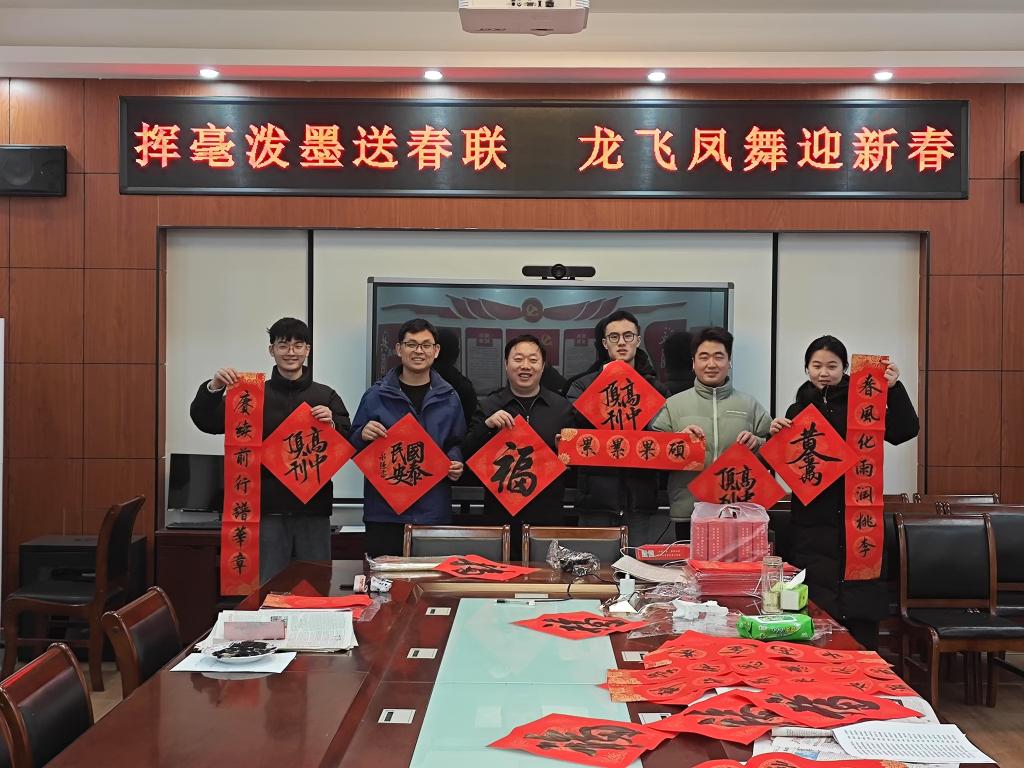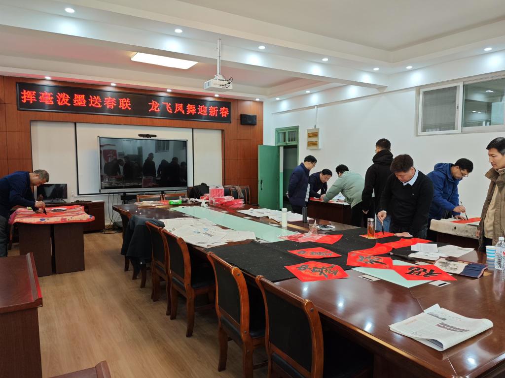 在会议室院举行了“挥毫泼墨送春联,龙飞凤舞迎新春”迎新春送春联活动。校书法协会部分老师应邀参加此次活动。