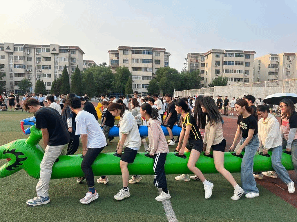 “运转乾坤”项目考验团队配合,队员们需共同控制大型充气球完成竞速。“转弯时球差点飞出去,但大家迅速调整,那种默契令人难忘”,队员田敏分享道。学院心理老师指出,这类项目能有效提升学生的应激管理和情绪调节能力。
