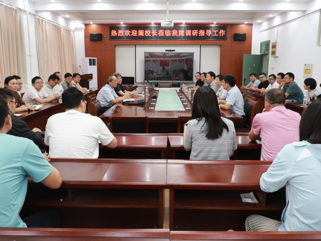 院长许光日重点围绕学科建设、基金申请、科研项目、成果奖申报等当前主要工作和下一步建设规划进行了详细汇报。阚云超认真听取了汇报,并与参会人员就科学研究、团队建设、职称评审、访学进修、成果转化等问题进行了深入的探讨和交流。