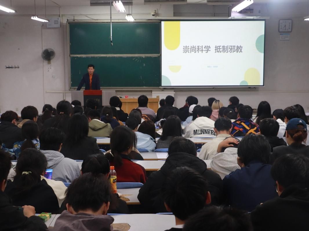 在学校10号合一教室举办“崇尚科学,抵制邪教”新生入学教育讲座。