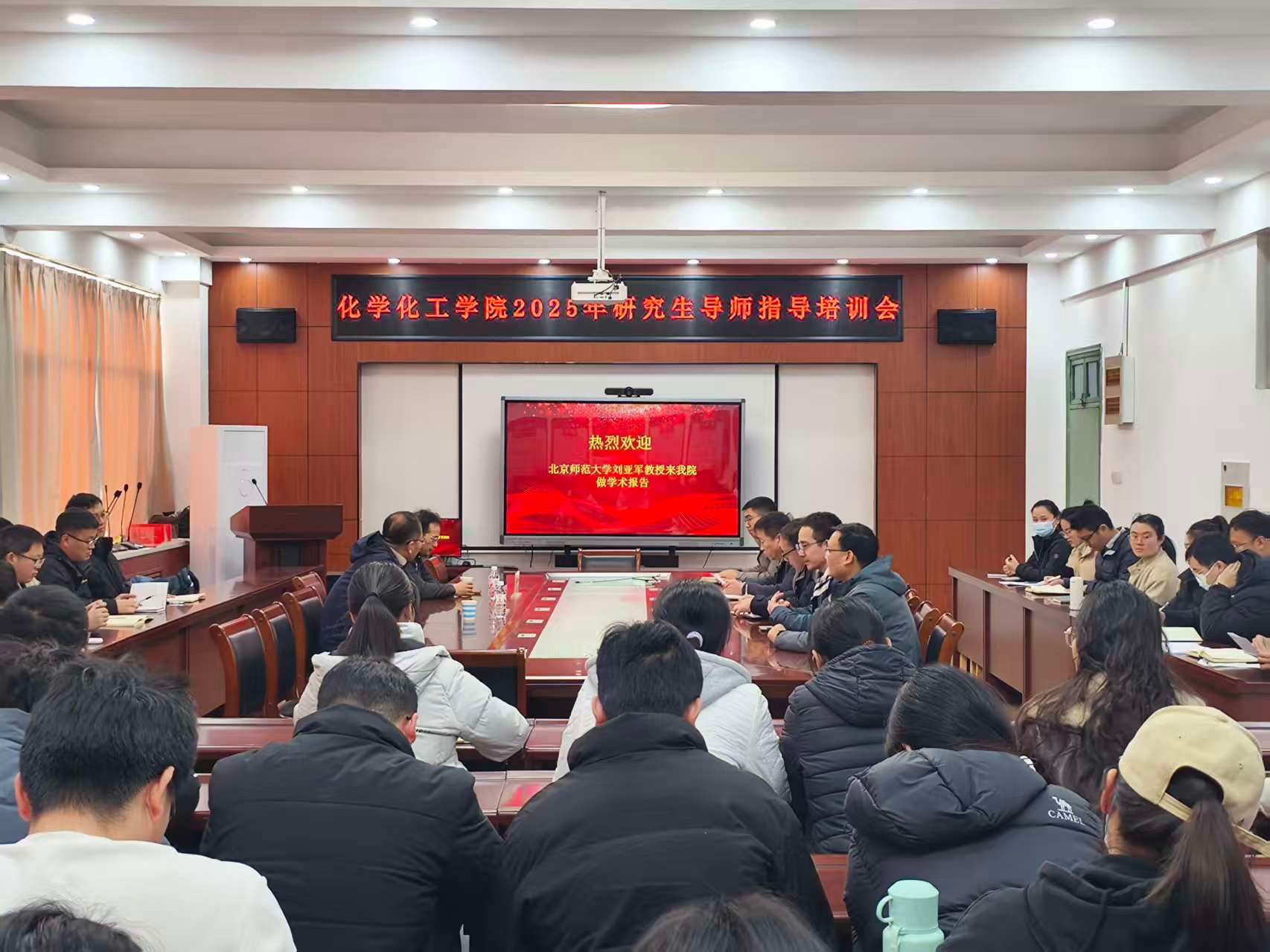 在实验楼D308会议室举办2025年研究生导师培训会。会议邀请北京师范大学国家自然科学基金杰出青年科学基金获得者刘亚军教授作专题报告。学院党政领导班子成员、全体研究生导师参加培训,会议由学院党委书记许光日主持。