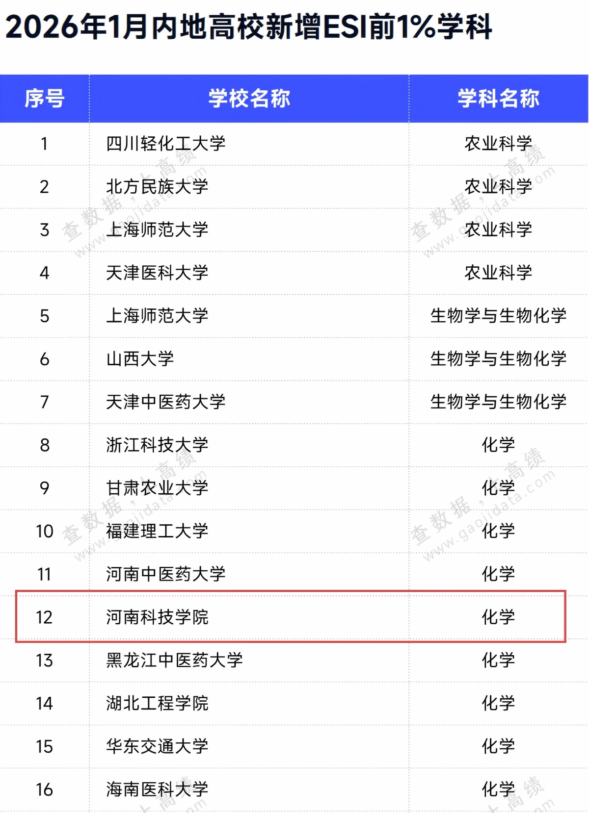 化学学科首次进入ESI全球排名前1%,标志着91成人电影