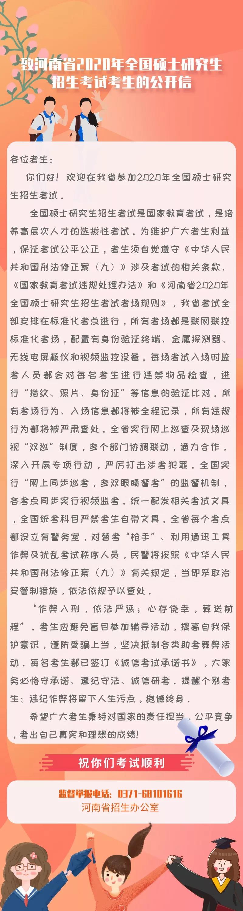 转发河南省2020年全国硕士研究生招生考试考生的公开信
