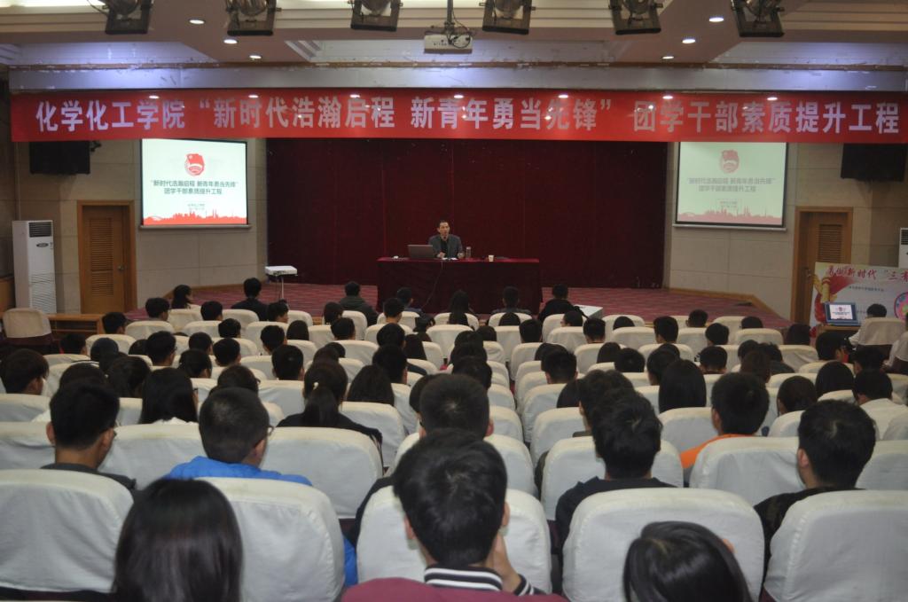 以“新时代浩瀚启程 新青年勇当先锋"为主题的团学干部素质提升工程启动仪式在图教201成功举行。院党委副书记郭超杰、团委书记吴丹出席仪式,16、17级全体学生干部参加了会议。会议由吴丹老师主持。