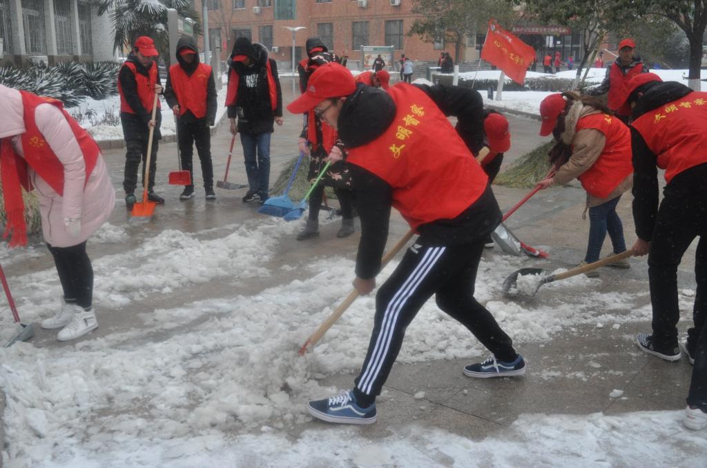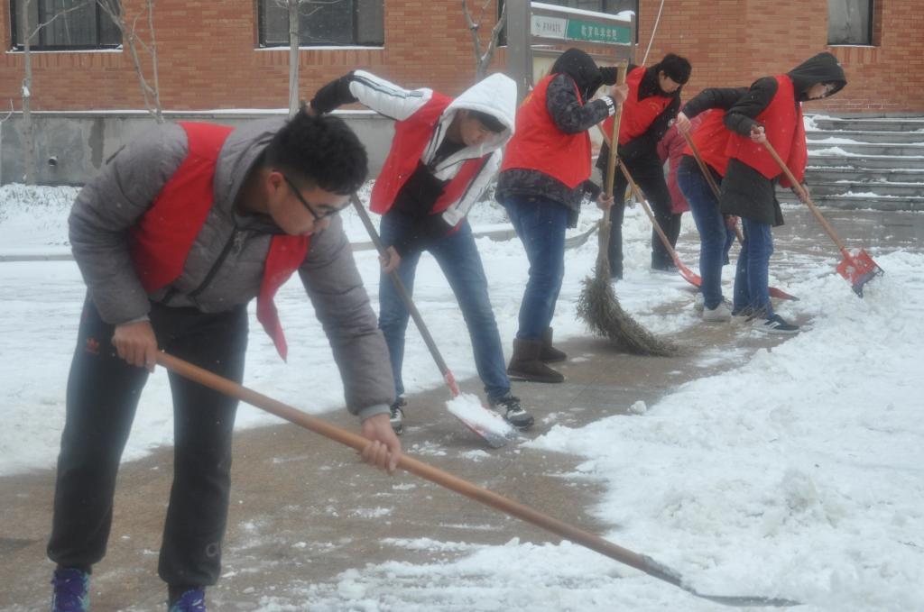 党委积极组织教师、学生党员、积极分子和志愿者开展清扫校园积雪活动。冷冽的北风和零下几度的低温使扫雪工作异常艰难,师生们不畏严寒,顶着寒风,积极参加,大家纷纷拿起铁锹和扫帚清扫路面积雪,你铲我扫,破冰扫雪,相互配合,干劲十足。洁白的雪花映照着一个个红彤彤的脸庞,扫雪队伍成了冬日校园里一道靓丽的风景线。劳动的身影感染了每一位路人,纷纷向扫雪的同学们投去了赞许的目光,大家劳动的热情和团结协作的力量让这个冬日变得格外温暖。