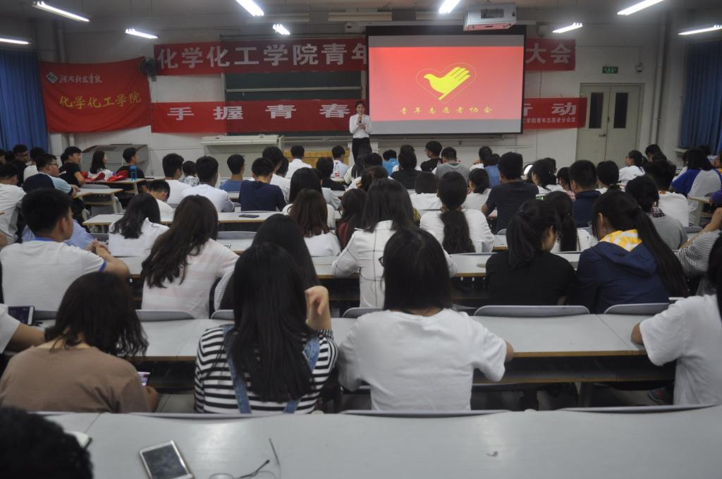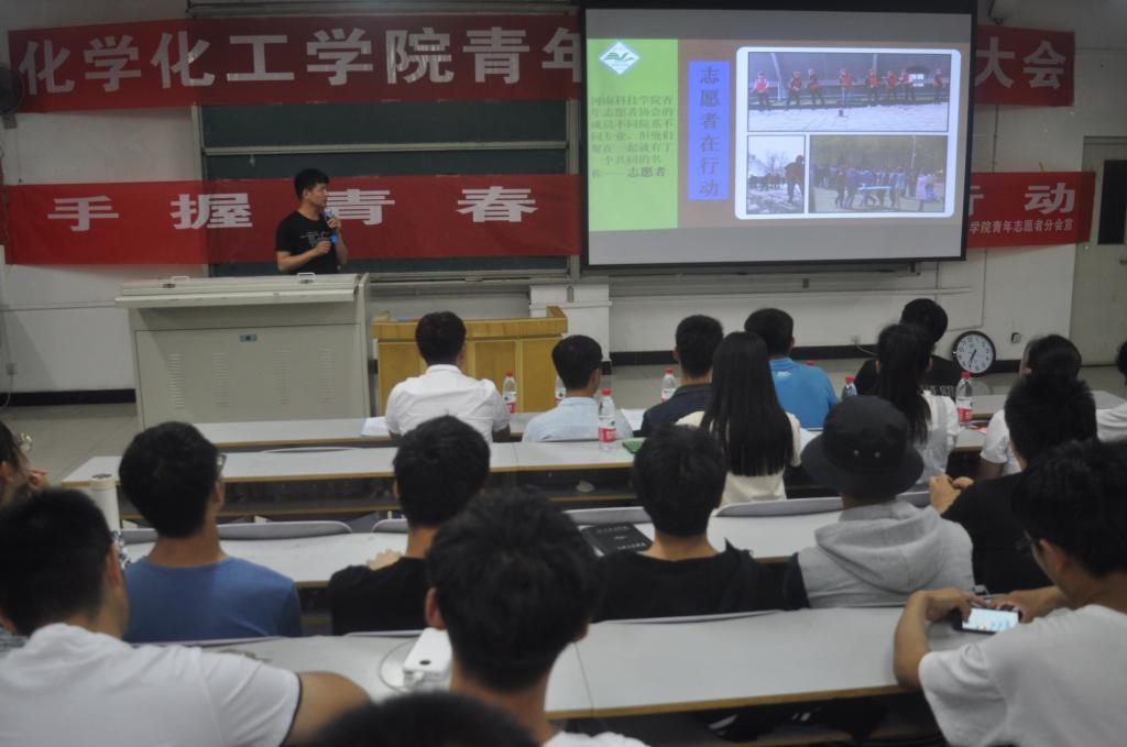在九#二成功举办“手握青春 爱在行动”志愿者协会宣誓大会。院学生会主席团、全体青年志愿者共计200余人参加了会议。