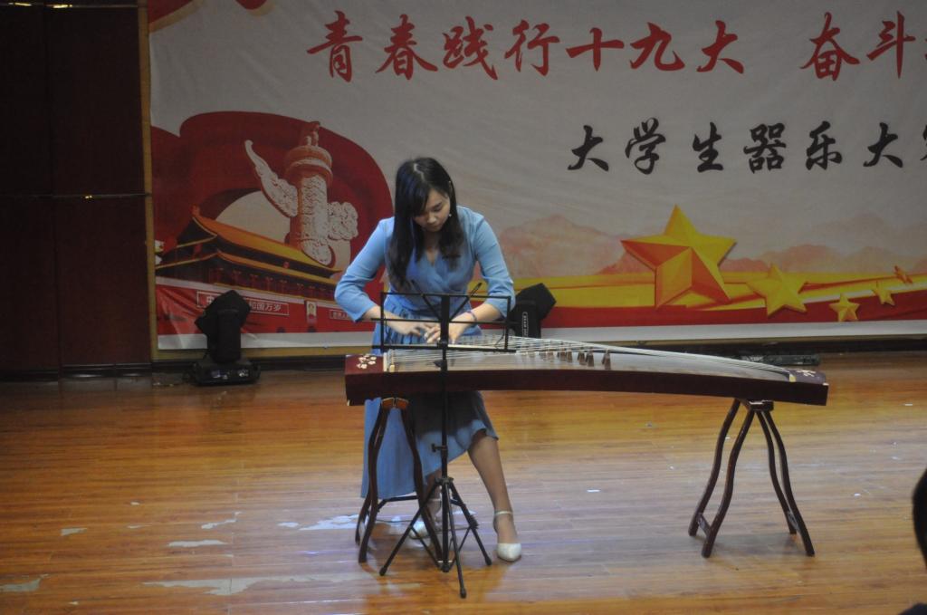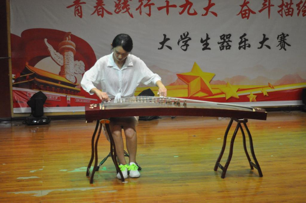 本次分为专业组和非专业组,经过初赛、复赛等环节,最终有14名选手脱颖而出进入总决赛。在决赛现场,同学们或用优雅古典的民族乐器二胡、古筝、葫芦丝,或用轻松时尚的西洋乐器吉它、架子鼓、钢琴,为观众带来一场视听盛宴。古筝独奏《清江放排》、《瑶族舞曲》、《雪山春晓》,二胡独奏《金珠玛米赞》,葫芦丝独奏《竹林深处》;钢琴独奏《第二谐谑曲》、《平湖秋月》、《春舞》、《月亮代表我的心》、《南海小哨兵》、《匈牙利狂想曲第六部》,架子鼓表演《都选C》,吉他表演《天空之城》、《西游记》……民乐与西洋乐,古典与现代,经典与创新,这些元素被选手们一一呈现在舞台上,整个比赛过程节奏时而轻松明快,时而慷慨激昂,出彩的表演和高超的技巧赢得场下阵阵掌声。比赛接近尾声,艺术学院器乐教研室李依纶老师演奏的《第一谐谑曲》钢琴曲更使现场气氛推向高潮,为比赛拉下了完美的帷幕。