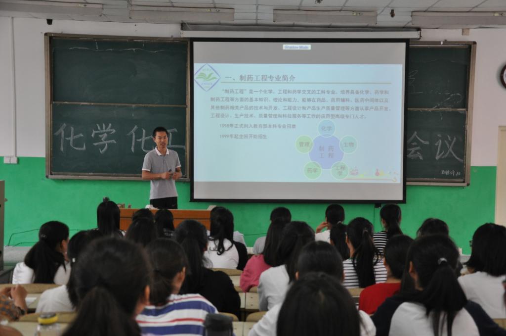在专业介绍会上,化学工程与工艺杨凤霞老师、应用化学孟志芬老师、制药工程专业胡林峰老师、材料工程专业侯振雨老师,分别围绕师资力量、课程设置、学科建设、培养目标、科研成果、发展前景和就业情况等多方面内容一一做了详细的讲解。接着,老师们结合社会发展形势和个人职业生涯规划,阐述了在校期间“学什么”、“为什么学”、“干什么”三类问题。同时也鼓励全体学生要积极参与社会实践,在实践增长本领,在实践中增长才干。老师们生动有趣的讲解、直观详实的案例,赢得了在场学生的阵阵掌声。
