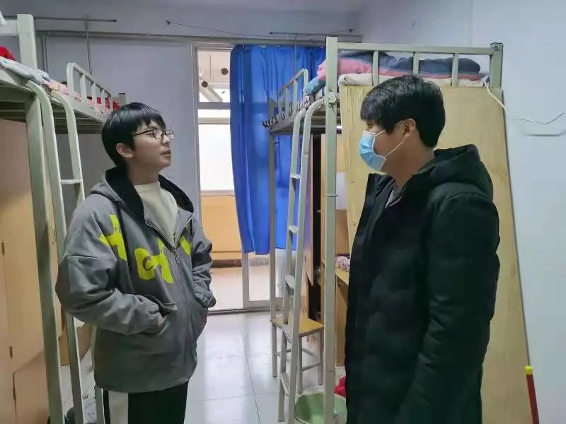 在走访过程中,各位老师与留校学生进行深入沟通交流,亲切询问了同学们寒假留校生活、学习情况,叮嘱同学们严格遵守学校疫情防控相关要求,提高疫情防控意识、做好自我防护、自觉进行每日健康打卡,并希望留校学生能及时调整思想和心理状态,养成良好的作息习惯,有任何问题和困难要第一时间与辅导员老师沟通。