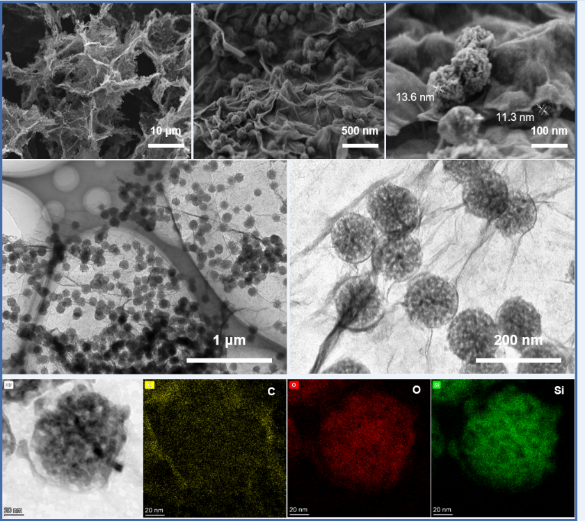 本论文通过一种新颖、简便的冷冻干燥与原位镁热还原相结合的方法,以二氧化硅和氧化石墨烯为原料制备了一种高度分散的三维石墨烯包裹多孔纳米硅复合负极材料(P-Si@rGO)。该材料具有许多优异特性:高度分散和被单独包覆的硅颗粒,硅和石墨烯之间紧密的Si–O–C相互作用,硅结构的多孔设计以及高孔隙率。这些优点显著增强了电极的反应动力学,赋予了复合材料更大的电接触面积和足够的缓冲空间以应对硅在锂化/脱锂过程中的体积变化,最终使P-Si@rGO获得优异的循环稳定性。本文研究了复合材料的物相组成和微观结构对其电化学性能的影响,分析了电极在循环后期容量增加的原因,为硅基负极的功能化演变提供了新的思路。