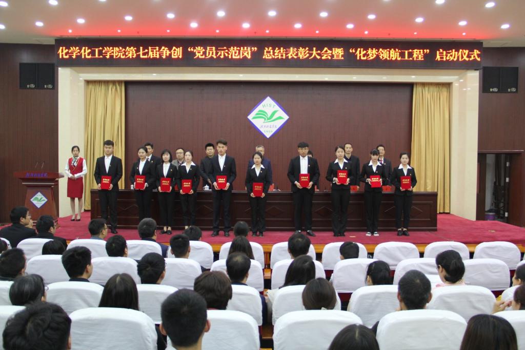 第七届争创“党员示范岗”活动表彰决定》。在欢快的乐曲声中,与会领导为荣获“党员示范岗”称号的张万庆等6名教师和邓文婕等10名学生颁发了荣誉证书。