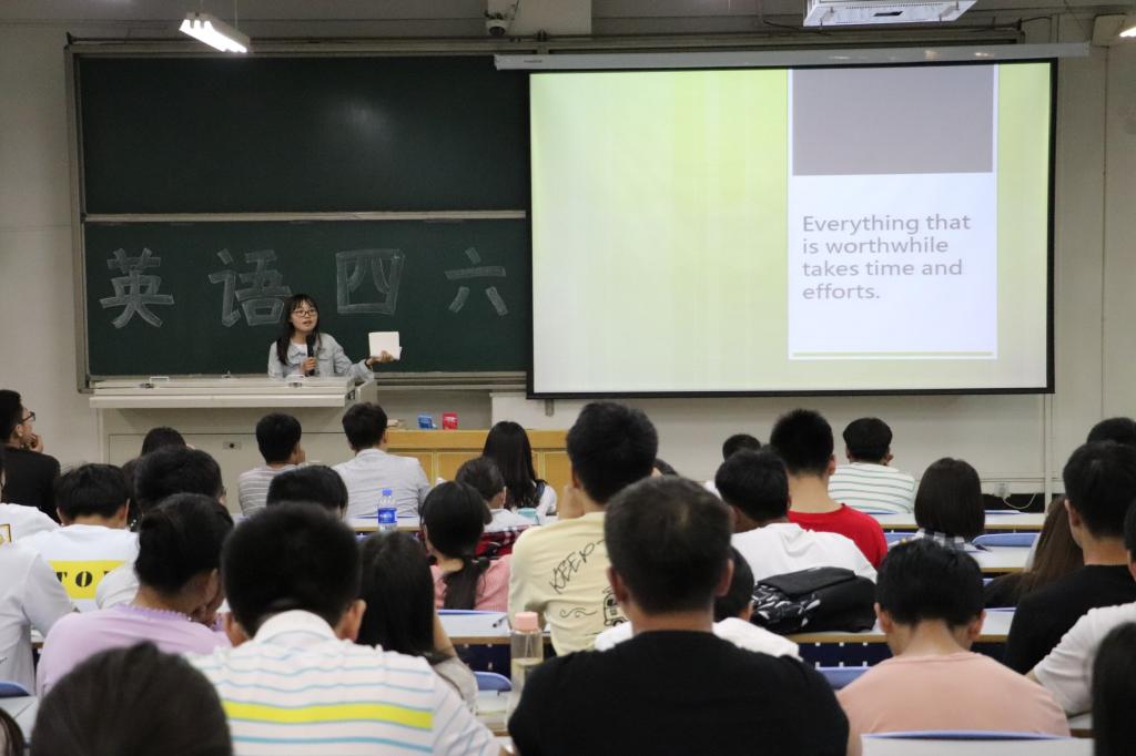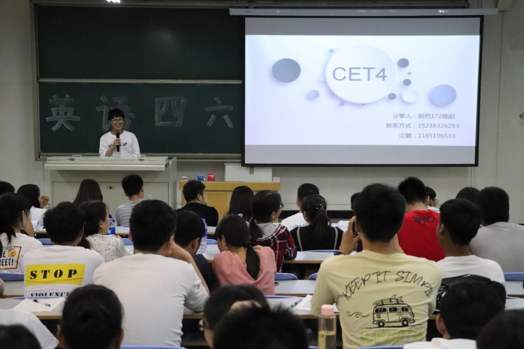 在十合七教室举行英语四六级学习经验交流会。辅导员刘颖,2017级、2018级学生到场聆听。