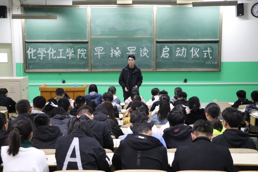 2019年早操早读活动实施方案》,并强调了开展早操早读是良好习惯养成的需要,是优良学风建设的需要,是推动文明校园创建的重要举措。全体学生要合理利用时间,提升专业知识,磨炼意志品质,不断的丰富自我、完善自我,让早操早读成为一种习惯。