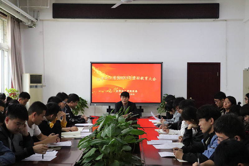 于学院会议室举行资助教育大会,团委书记侯小鹏及79名申请贷款学生参加。