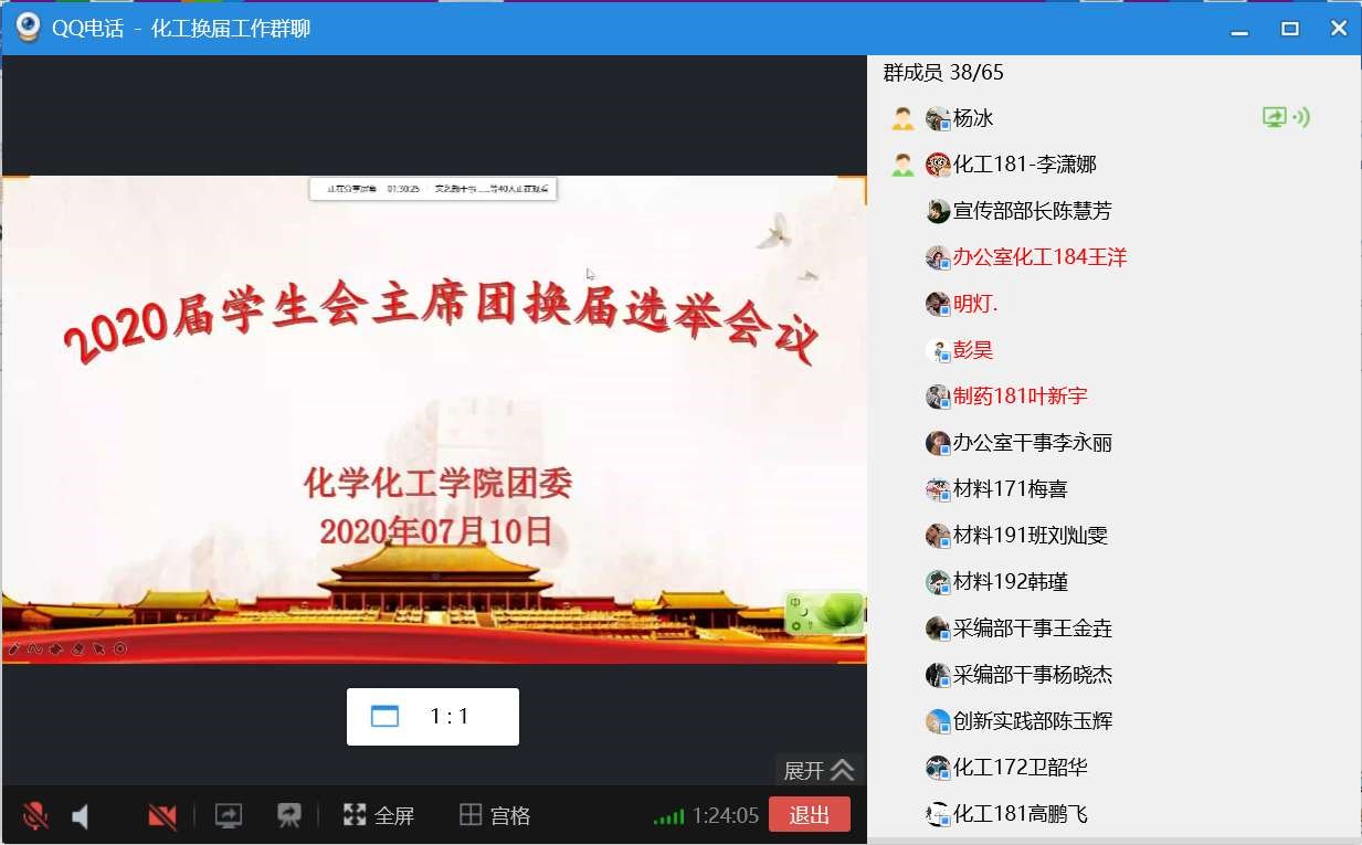 召开2020届团委学生会主席团换届选举线上大会。党委副书记朱宏,全体辅导员,学生会成员和学生代表参加了会议。
