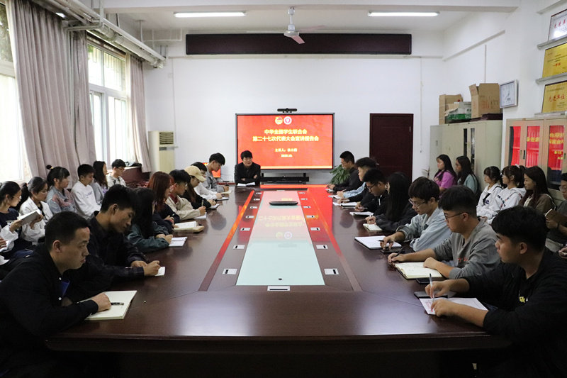 团委在学院会议室召开“学习中华全国学联第二十七次代表大会精神”宣讲报告会,全体学生会干部参加,会议由学院团委书记侯小鹏主持。