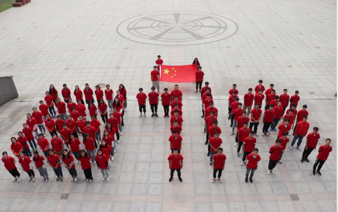 花式造型告白祖国。学院百名学子在启智广场组成多个方阵,挥舞者鲜艳的红旗,摆出“国庆”“71”“爱心”的造型,手持“勇于砥砺奋斗”“练就过硬本领”“争做时代先锋”“争做时代青年”的字牌,用最美青春的向祖国坚定承诺,深情告白祖国。