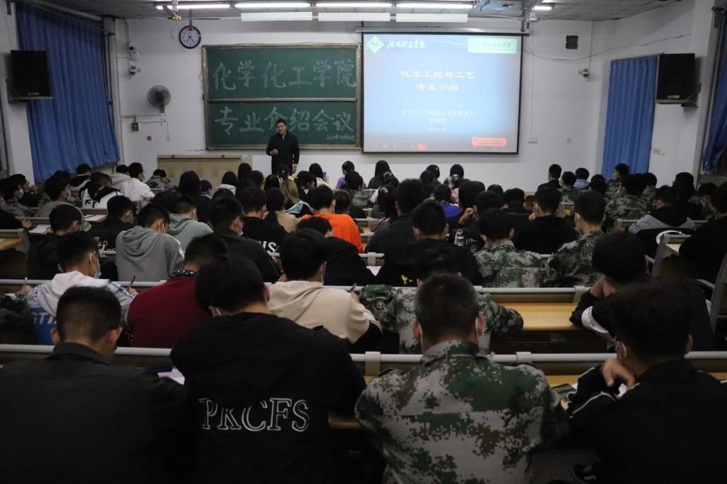 分别在一合一、一合二、一合三、一合四教室召开了2020级新生专业介绍会。