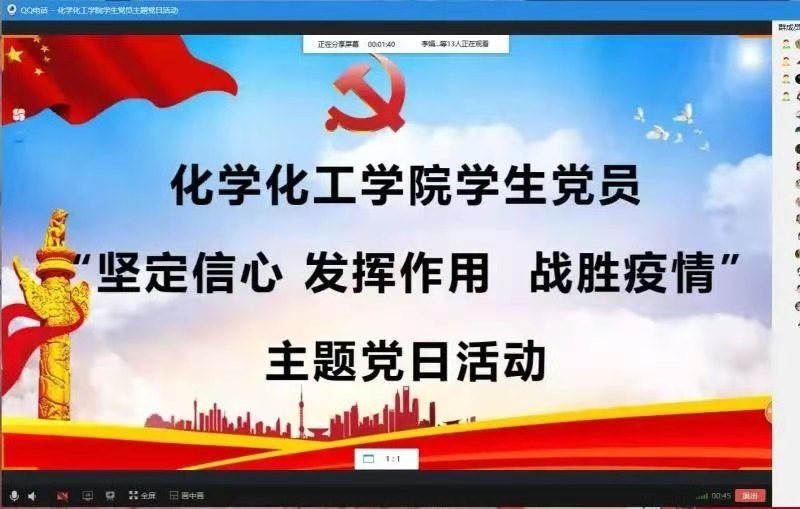借助腾讯会议平台开展了“坚定信心 发挥作用 战胜疫情”为主题的线上主题党日活动,学院团委书记侯小鹏主持,全体学生党员参加此次活动。