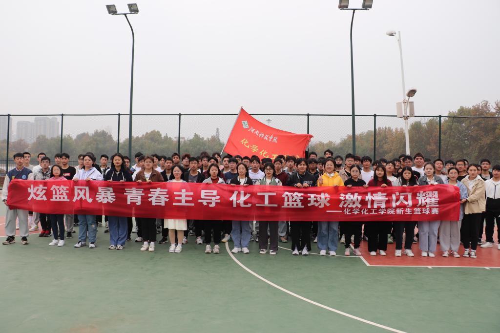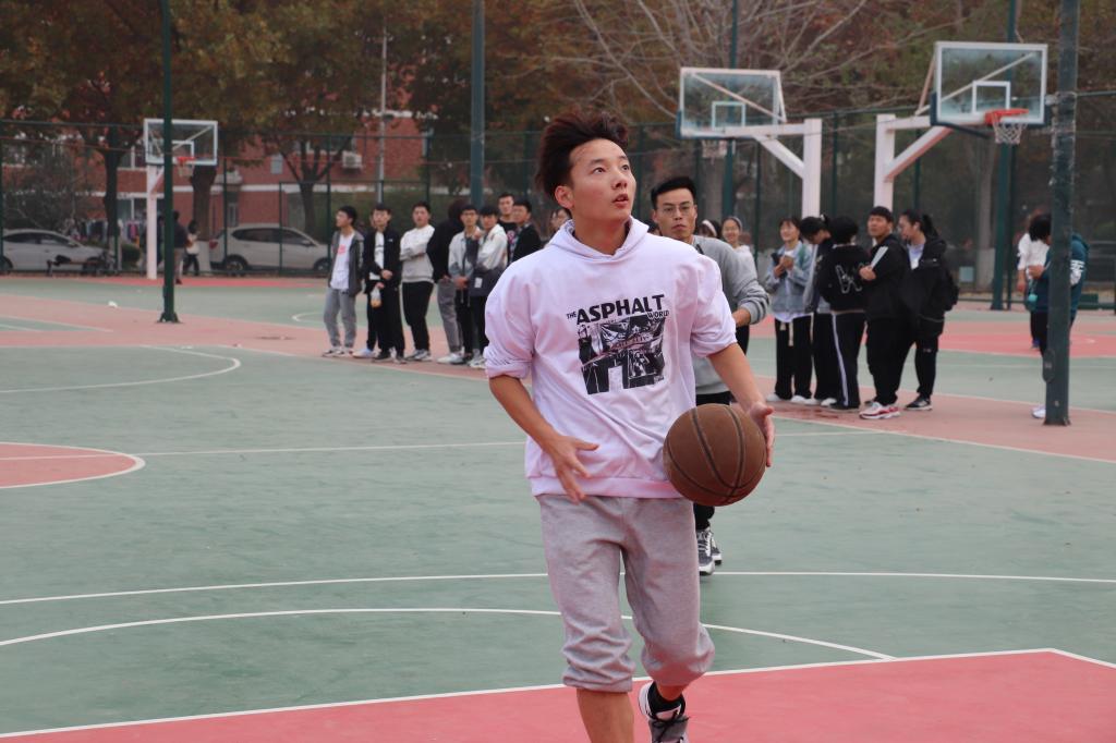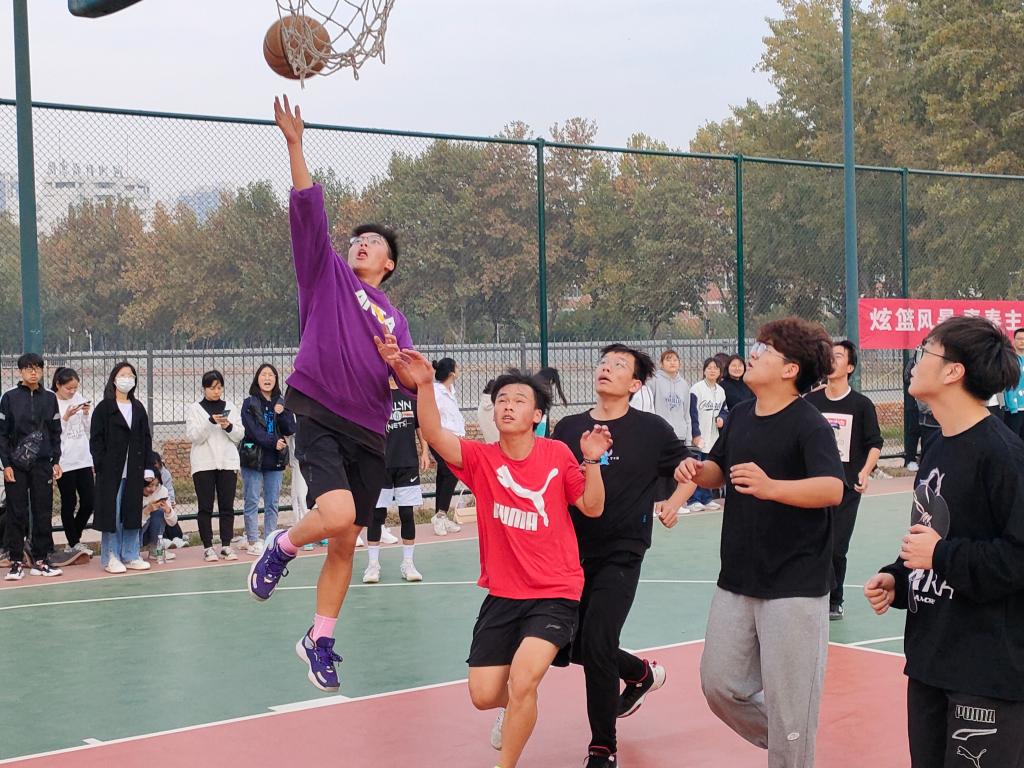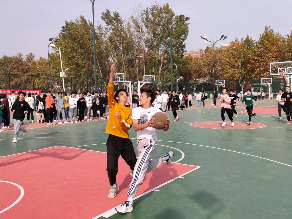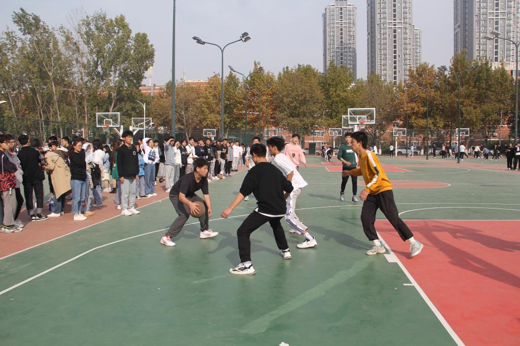 在东区篮球场举办了以“以篮球之名,展青春风采”为主题的新生篮球赛。全体新生到场观看。