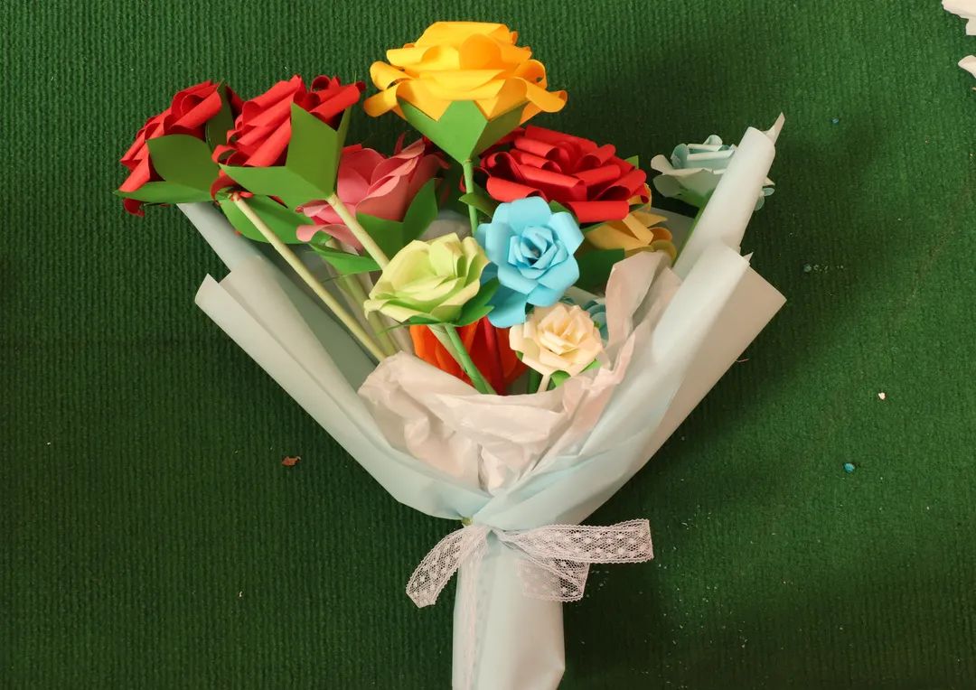 展才艺,显真情。学生通过制作手工品将自己的才艺展示出来。折纸、编织花等一件件手工作品,不仅刻画出一位位心灵手巧的女生,而且表达了对母亲深深的感恩之情。