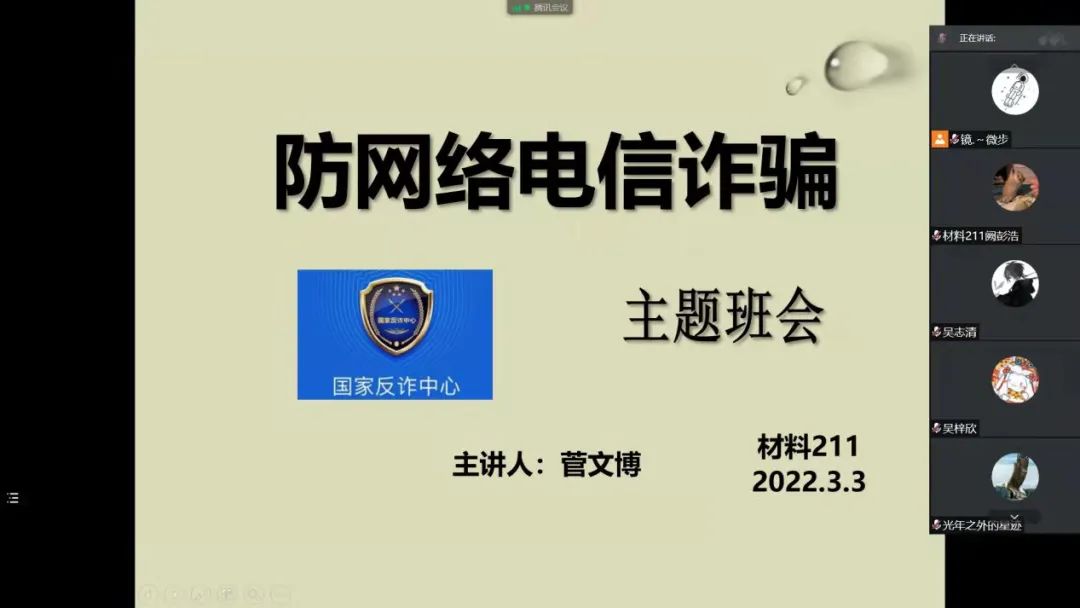 会上,学院各班级班委结合近期电信诈骗安全教育事例,向班级同学讲解了防范电信诈骗的方法,并提醒同学们一定要增强安全意识,紧绷安全之弦。同学们围绕“防诈骗”积极发言,交流了心得体会。