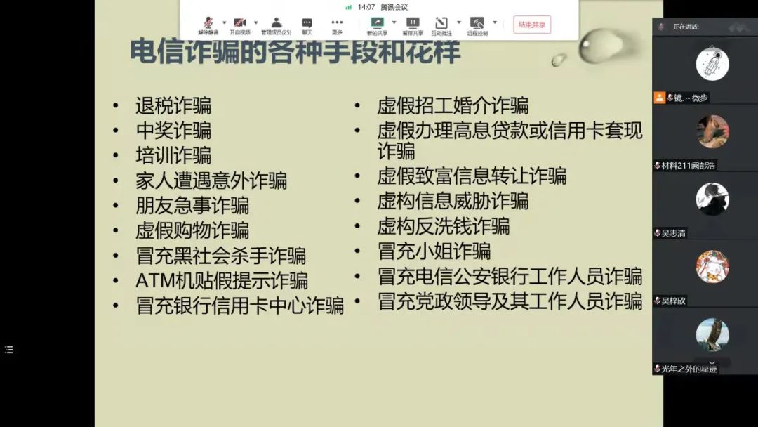 组织召开新学期线上防诈骗主题班会。学院各班级通过钉钉、微信等多种方式开展班会活动。