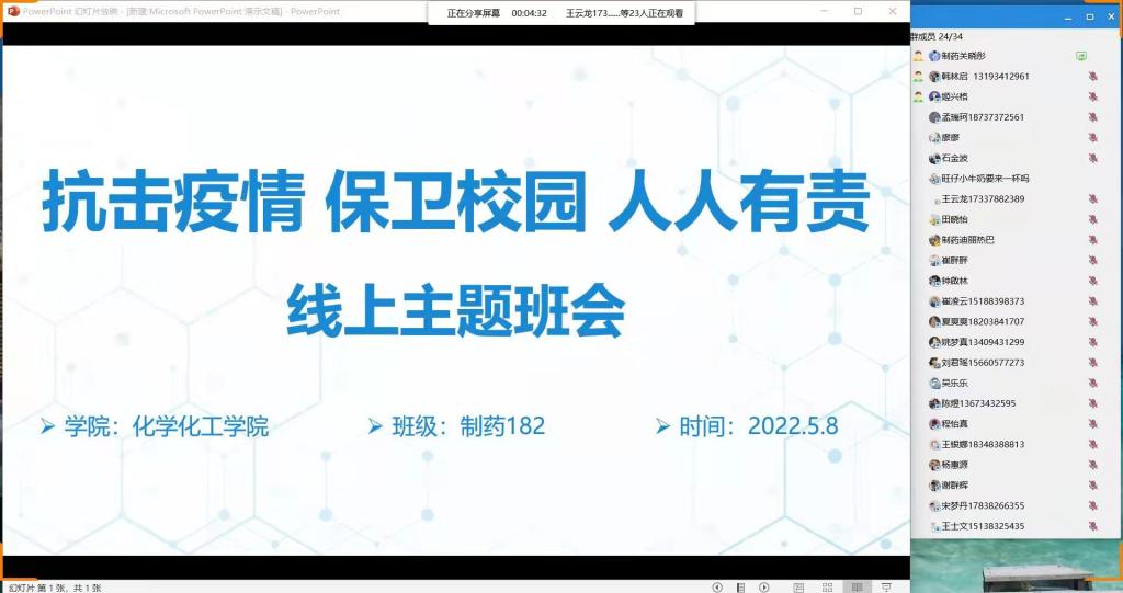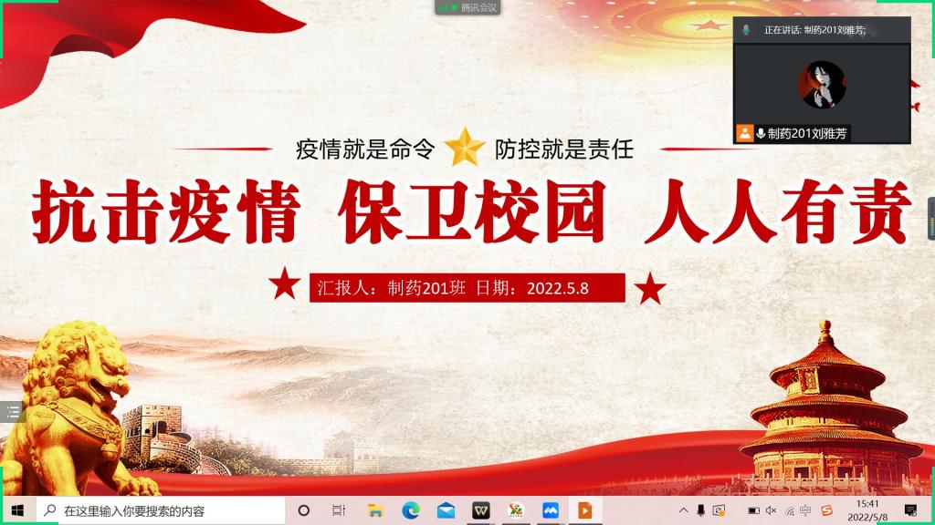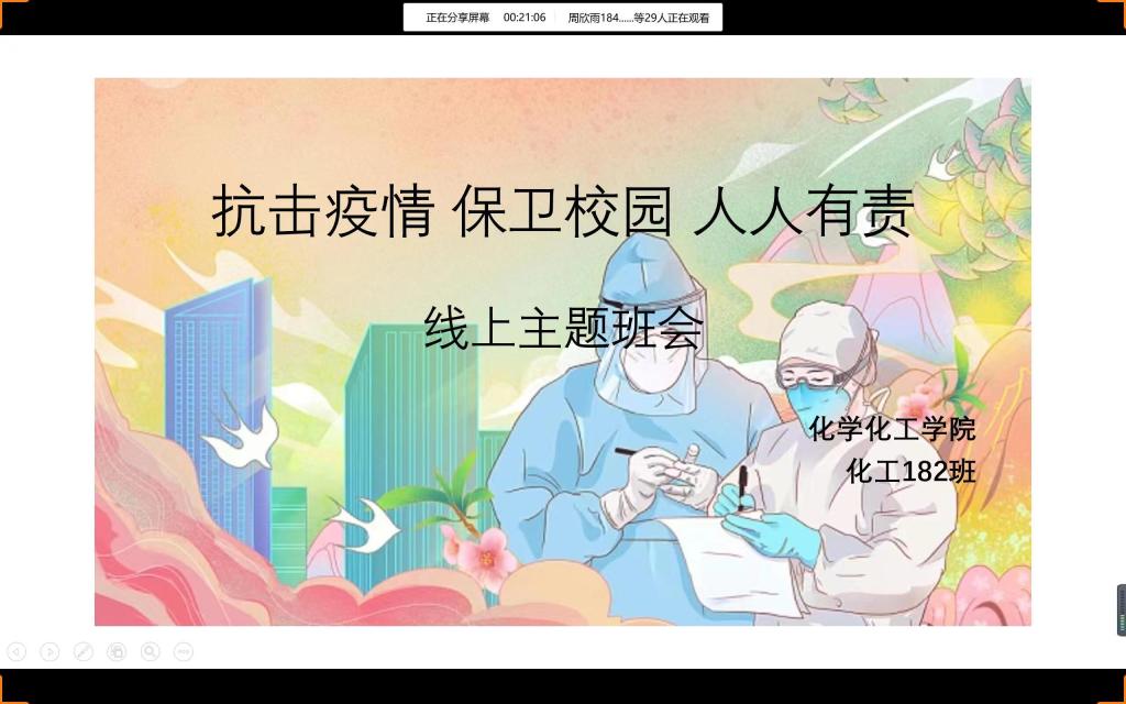 根据学校疫情防控要求,班会采取线上方式进行。会上,各班级负责人通过图片、视频等介绍了因违反疫情防控造成严重后果的生动的案例,要求班级学生认清疫情防控的严峻形势,自觉遵守校规校纪和疫情防控各项规定。与会人员围绕疫情期间“我们面临什么”“我们该做什么”“我们能做什么”进行了热烈的讨论。