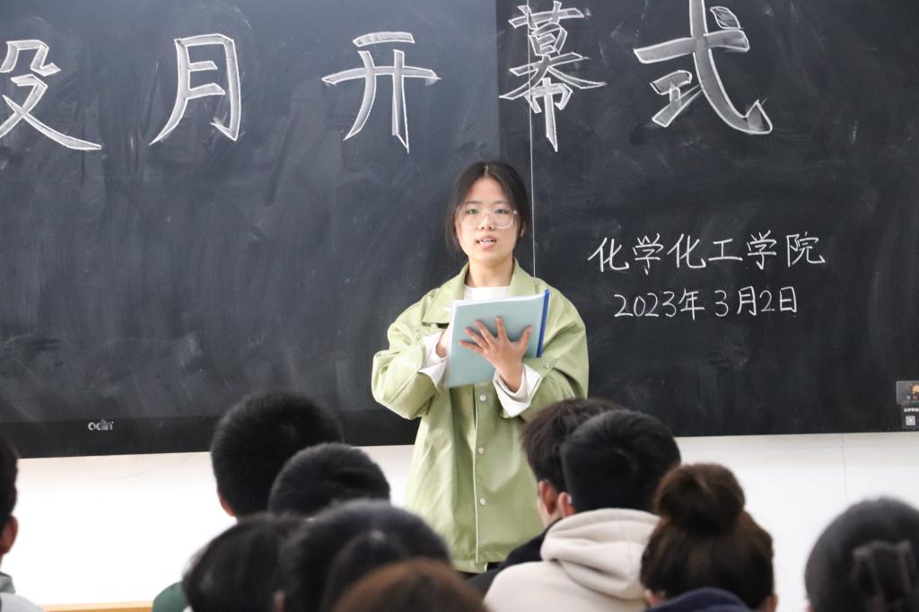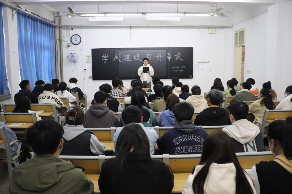 在1108教室举行以“执勤奋为笔,蘸好学为墨,‘化’学风蓝图”为主题的学风建设月开幕式,学院2020级、2021级、2022级学习委员参加了本次活动。