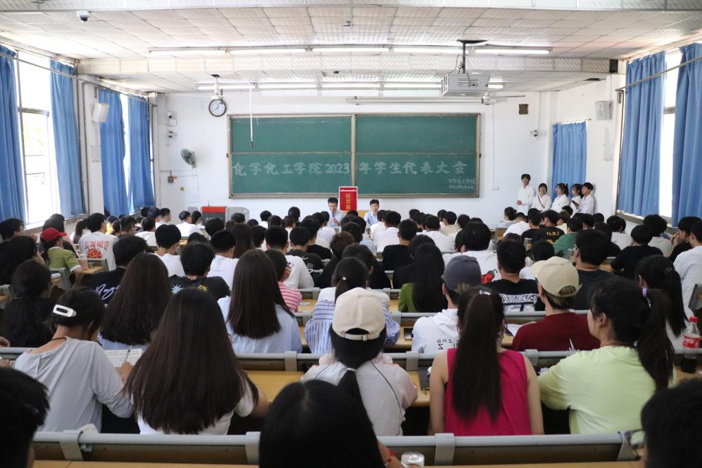 在一合一教室召开2023年学生代表大会。院党委副书记谷永庆,辅导员吴俊超和149名学生代表参加了会议。