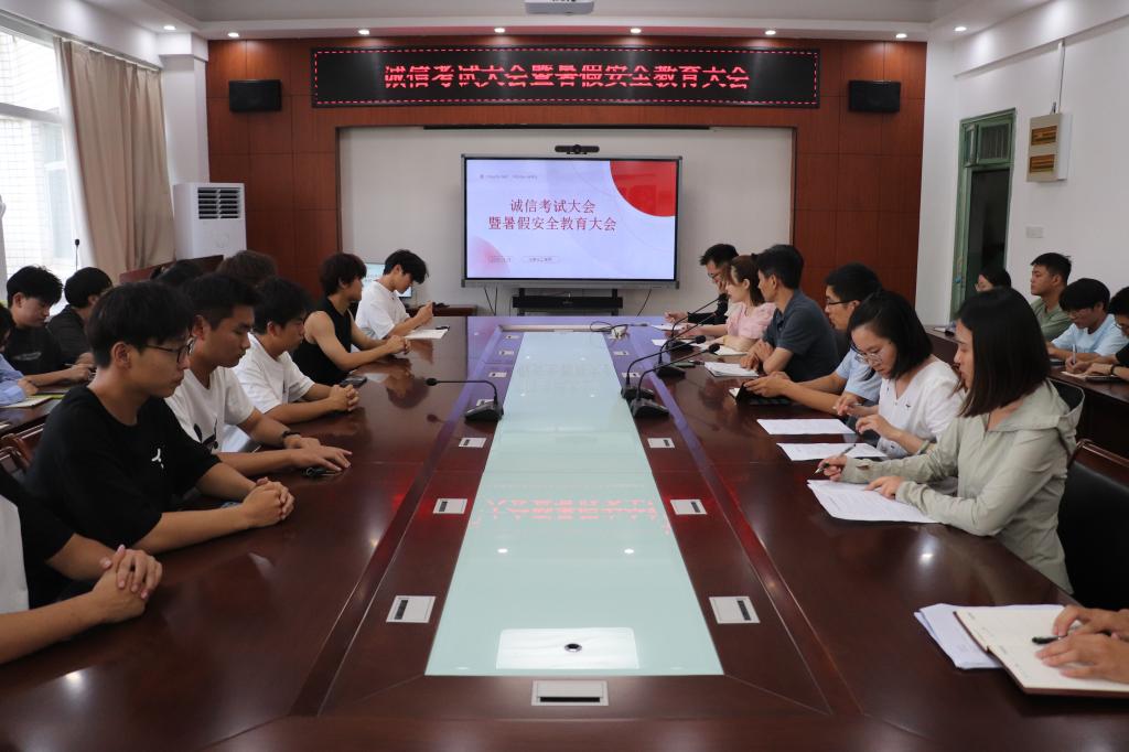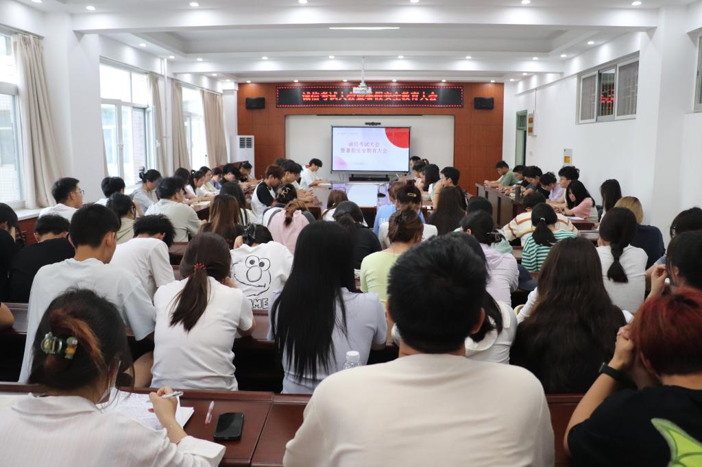 诚信考试相关规定及处理办法》和诚信考试倡议书。通过宣读文件,加强对学生的诚信考试教育,引导同学们自觉遵守考场纪律,文明应考,共同营造公平、公正的考试环境。随后,辅导员李寒玉强调了暑期安全的重要性,围绕防诈骗、防火灾、防溺水、交通安全、心理健康等方面进行了详细讲述,提醒同学们强化安全意识,筑牢安全防线。