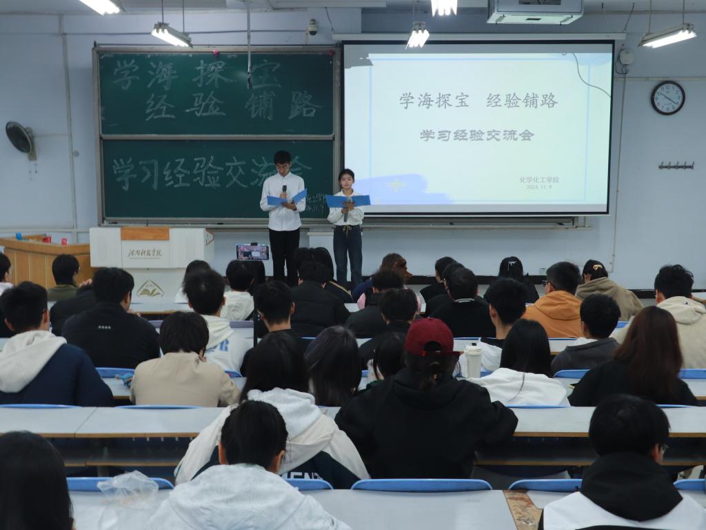 于九合一教室举办以“学海探宝,经验铺路”为主题的学习经验交流会。学院优秀学生代表、2024级全体学生参加交流会。