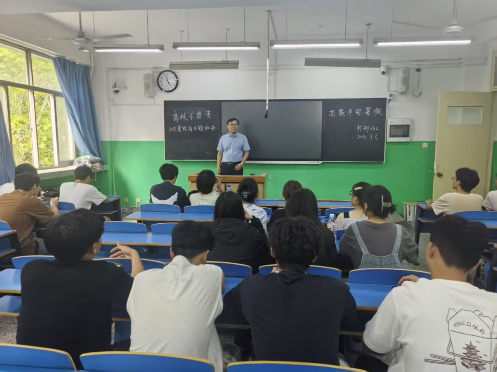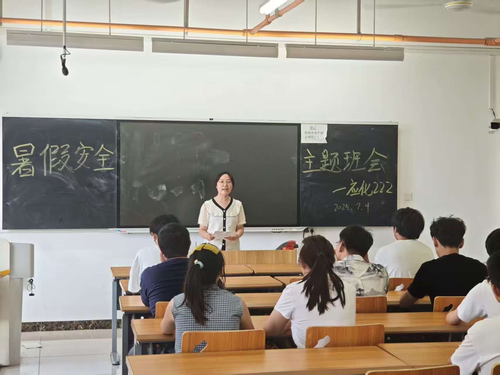 班会内容涵盖反邪教、防范网络电信诈骗、离校途中及返家后的人身与生命安全、交通安全、消防安全、网络行为规范,以及防暑、防洪、防溺水等关键领域。班主任特别提醒学生离校前务必对宿舍进行断水断电处理,清理杂物,并按规定规范停放电动车。班会勉励全体同学切实提升安全意识,科学规划假期时间,努力培养良好的学习生活习惯和积极向上的生活态度,度过一个平安、充实的假期。