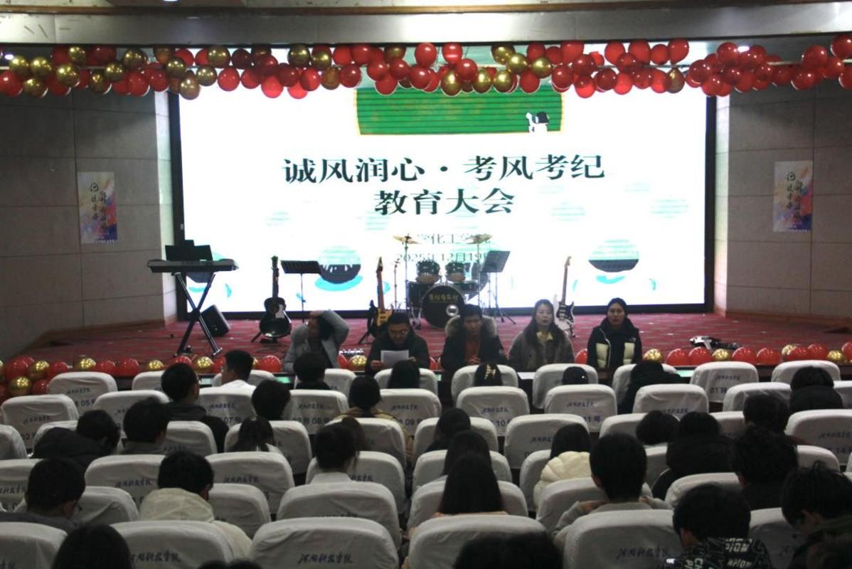 于12月19日在图教201召开诚风润心·考风考纪教育大会。学院党委副书记谷永庆、全体辅导员及各班级学生代表参加会议,会议由团委书记王莹主持。