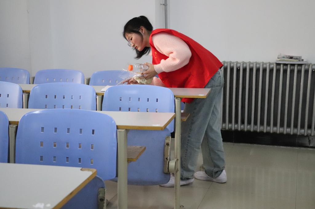 活动以“小组分工”的方式进行。活动开始前,负责人对卫生区域、工作内容、清扫工具进行了具体分配。活动中,志愿者们分工明确、相互配合、不怕脏不怕累,认真擦拭黑板课桌灰尘、清洁桌面胶印污迹、清扫地面垃圾。经过此次清扫活动,教室整体环境焕然一新。