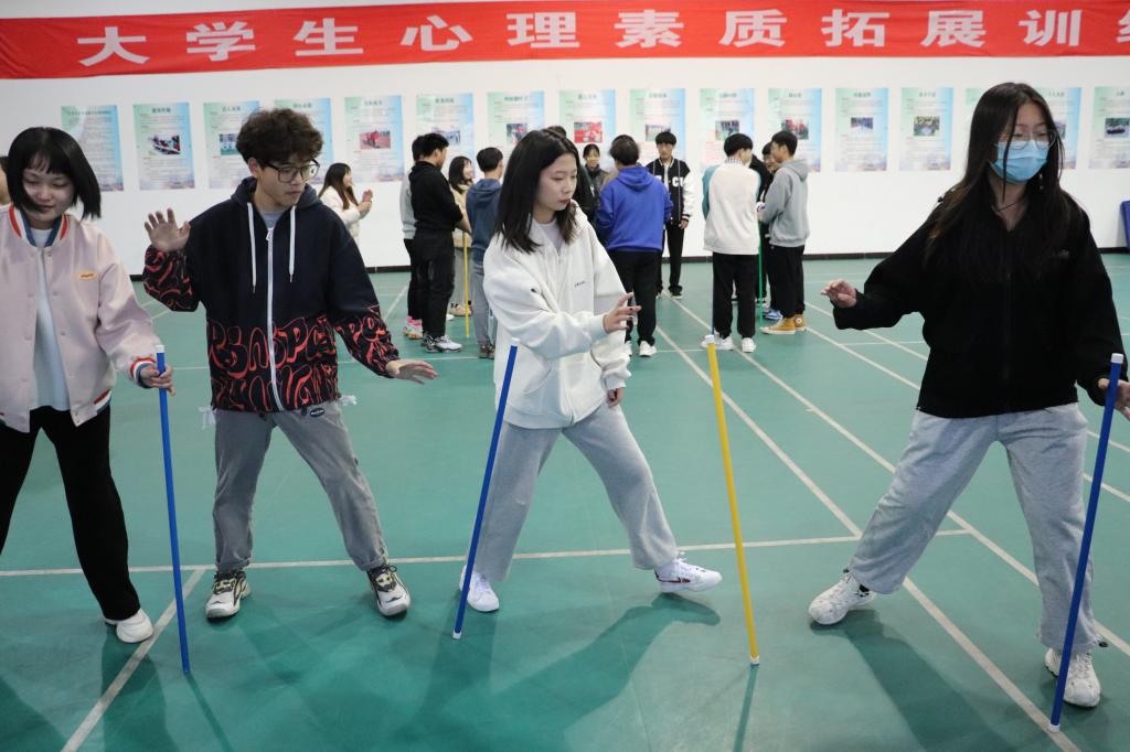 在大学生心理健康教育与指导中心开展心理健康素质拓展活动。学院各年级学生积极参与。